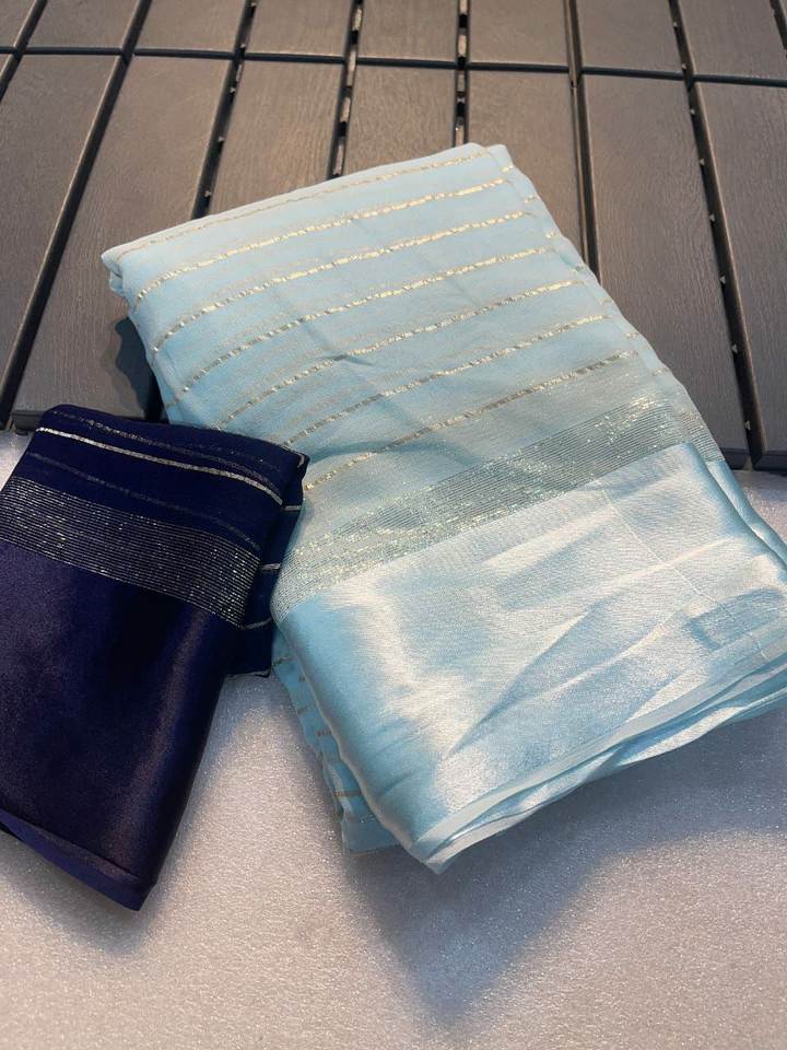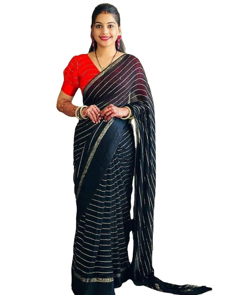 Laheriya ผ้าจอร์เจียวิสคอสพิมพ์ลายความยาวสุดหรูเสื้อส่าหรีแบบแฟนซีพร้อมเสื้อนอกเย็บตะเข็บ