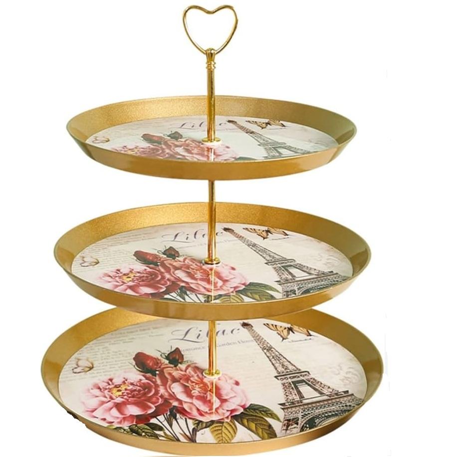 ฐานวางเค้กโลหะเคลือบทองมาตรฐานสูง ขอบโลหะ รักษาสิ่งแวดล้อม เหมาะสำหรับเสิร์ฟขนมหวานในงานวันเกิด ตกแต่งโรงแรมและร้านอาหาร
