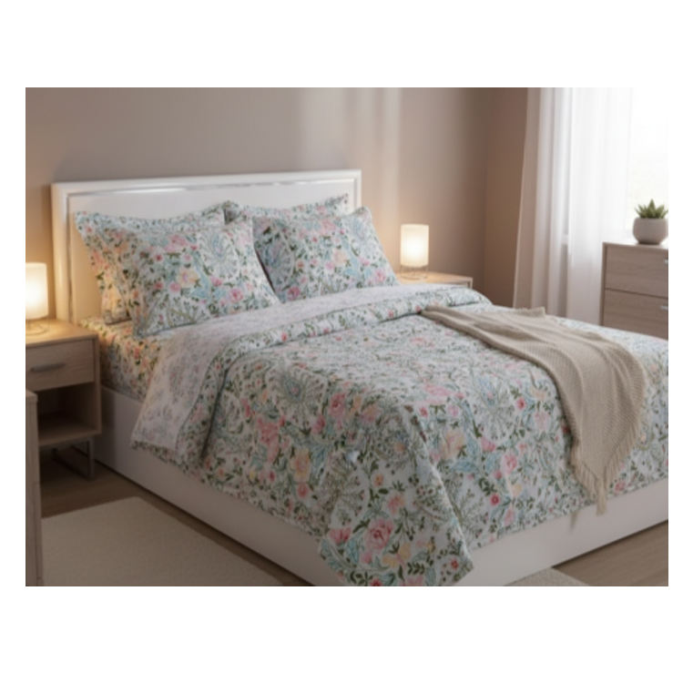 Included Components: ผ้าปูที่นอนแบบเรียบ 1 ผืน, ผ้าปูที่นอนแบบรัดมุม 1 ผืน และปลอกหมอน 2 ใบ
