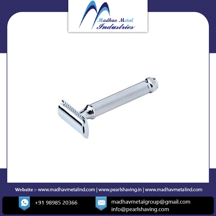 มีดโกนสแตนเลสสองชิ้นสำหรับผู้ชายมีดโกนปลอดภัยแบบปรับได้ฉลากส่วนตัวตามต้องการ