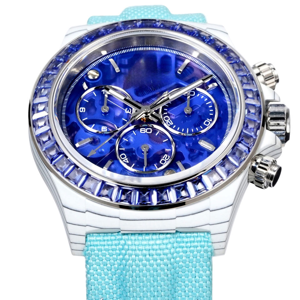 นาฬิกาแซฟไฟร์สุดหรูระดับท็อป หน้าปัดโปร่งใสเพื่อการชมกลไกการทำงาน นาฬิกาสุดพิเศษสำหรับงานที่เป็นทางการ