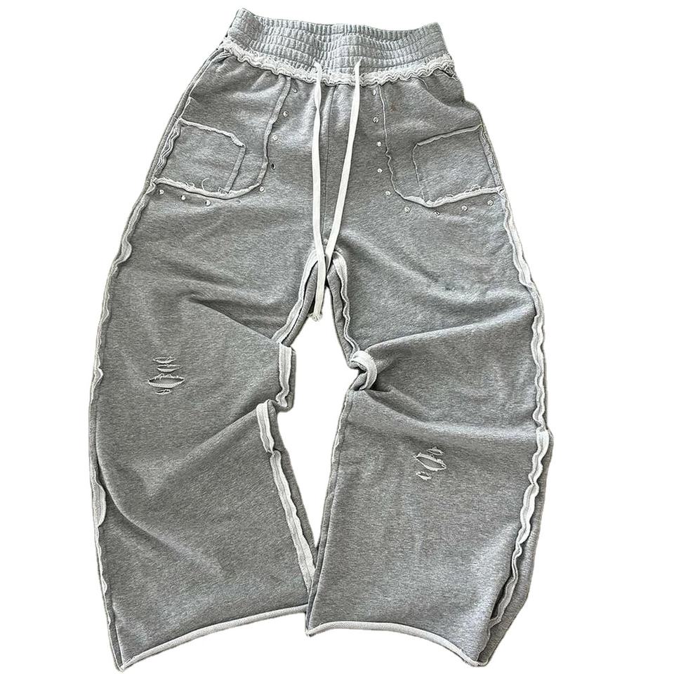 กางเกงทรงบานผ้าคอตตอนขนาดใหญ่ออกใหม่แบบปรับแต่งได้เอวล้างความทุกข์พร้อมแถบข้างกางเกงทำจากผ้าฝ้ายเฮฟวี่เวทสไตล์ยอดนิยม