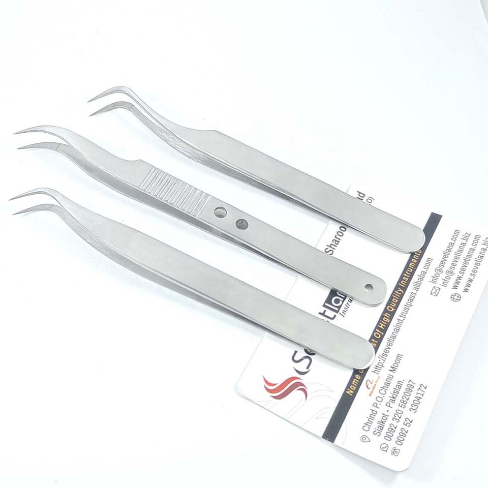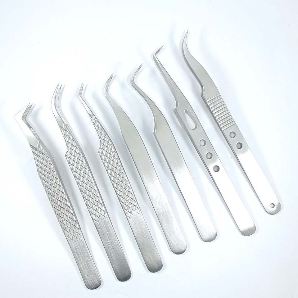 ชุดแหนบต่อขนตาทำจากผ้าซาตินทำจากสเตนเลสที่ได้รับความนิยมสูงสุด100% ที่จับที่ดีที่สุดพร้อมปลายแหลมไฟเบอร์
