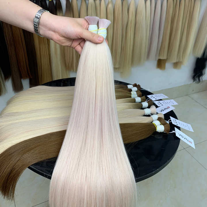 วิกต่อผมบริสุทธิ์จากเวียดนาม100กรัมมีสีอ่อนเรียงเป็นเส้นตรงขนาด14นิ้วแบบสองชั้น