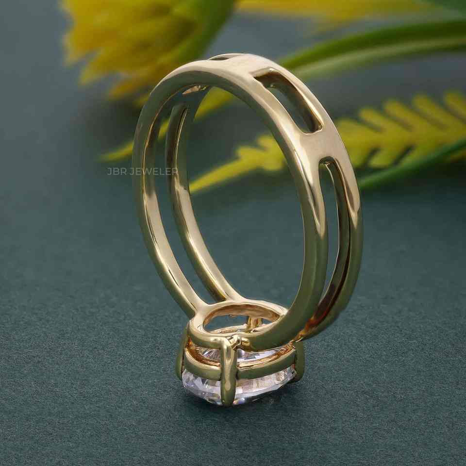 แหวนหมั้นเพชรสองวงสีเงินคู่สำหรับผู้หญิงได้รับการรับรองจาก VVS 1Ct ทรงวงรีเคลือบทอง925