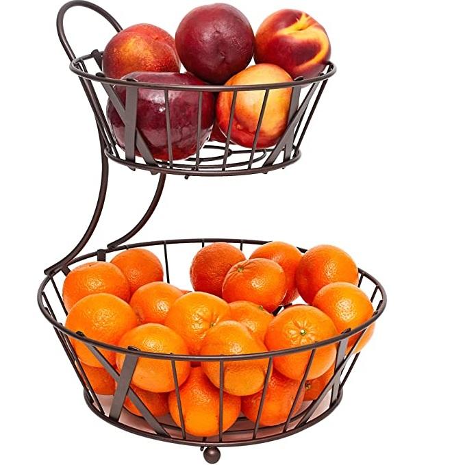 ตะกร้าตกแต่งเคาน์เตอร์ครัว 2 ชั้น แบบโลหะ ปรับแต่งได้ สำหรับงานจัดเลี้ยง ใช้ในบาร์ สีดำเคลือบผง กำลังเป็นที่นิยมอย่างมาก