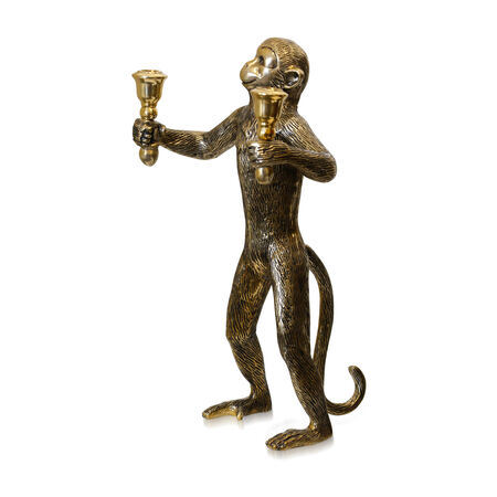 เชิงเทียนชิมแปนซีทองเหลืองโบราณที่วางเทียนบนโต๊ะของโรงแรมบ้านโลหะตกแต่งด้วยลวดลายโบราณ