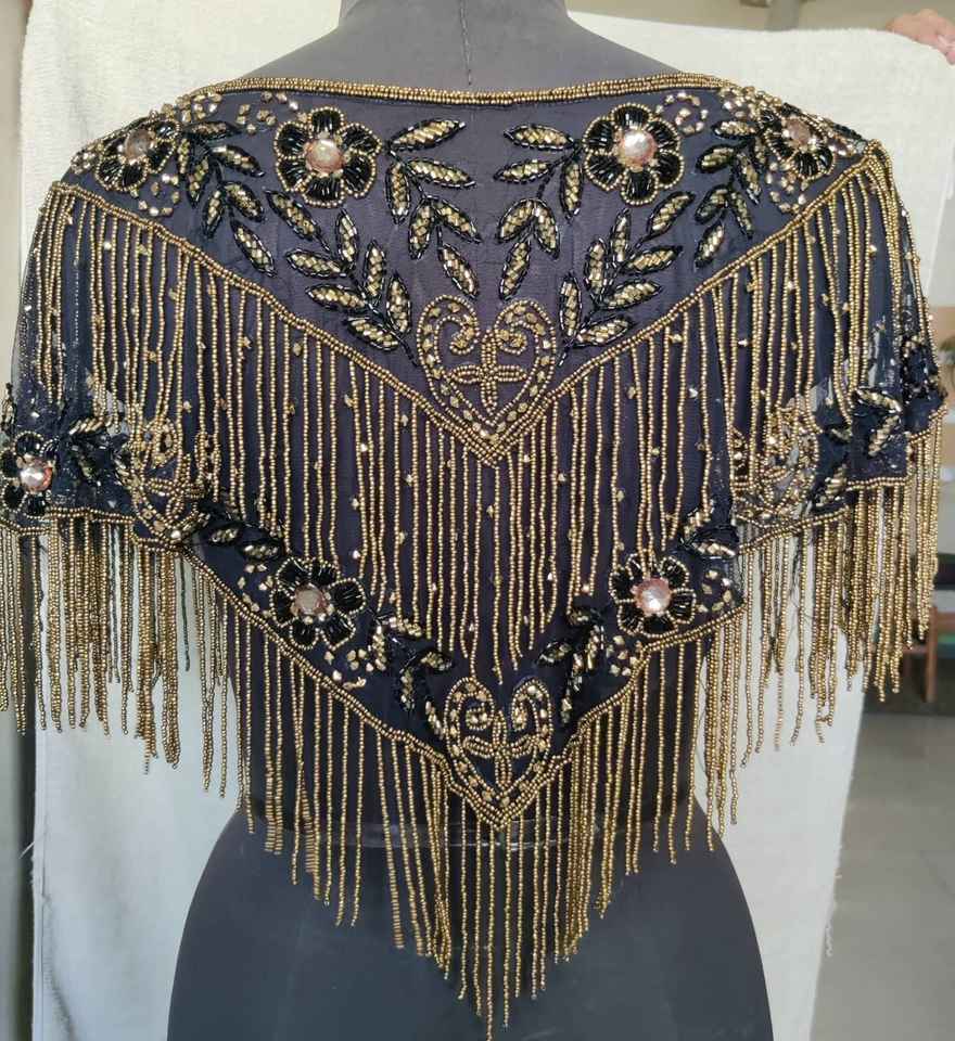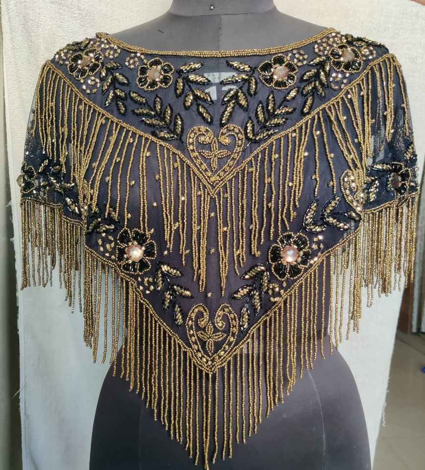 เสื้อคลุมปักลายสีดำทองประดับคริสตัลพร้อมพู่ห้อยสุดฮิต ขายส่งแฟชั่นสำหรับงานกลางคืน