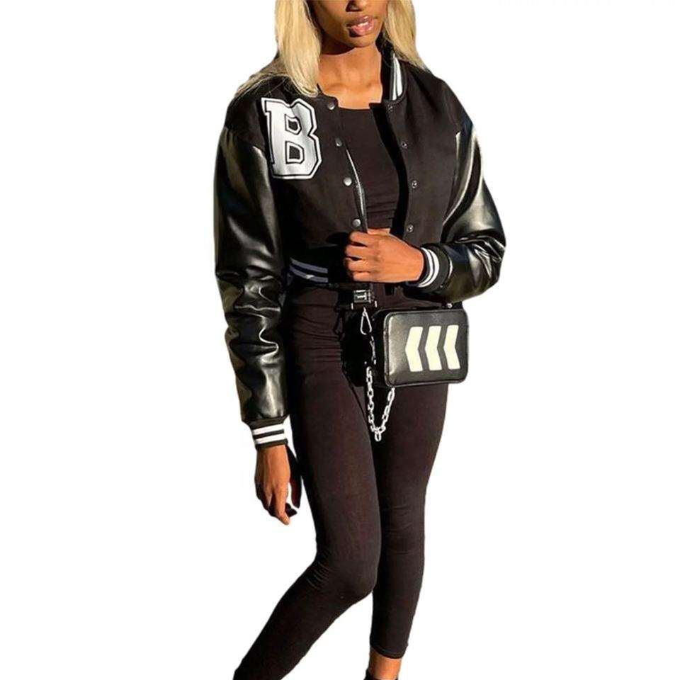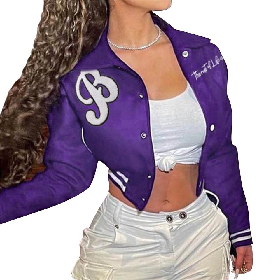 เสื้อแจ็คเก็ตผ้าฝ้ายขนแกะสำหรับผู้หญิงเสื้อครอป2025เสื้อแจ็คเก็ตมหาวิทยาลัย100% โลโก้ตามสั่ง