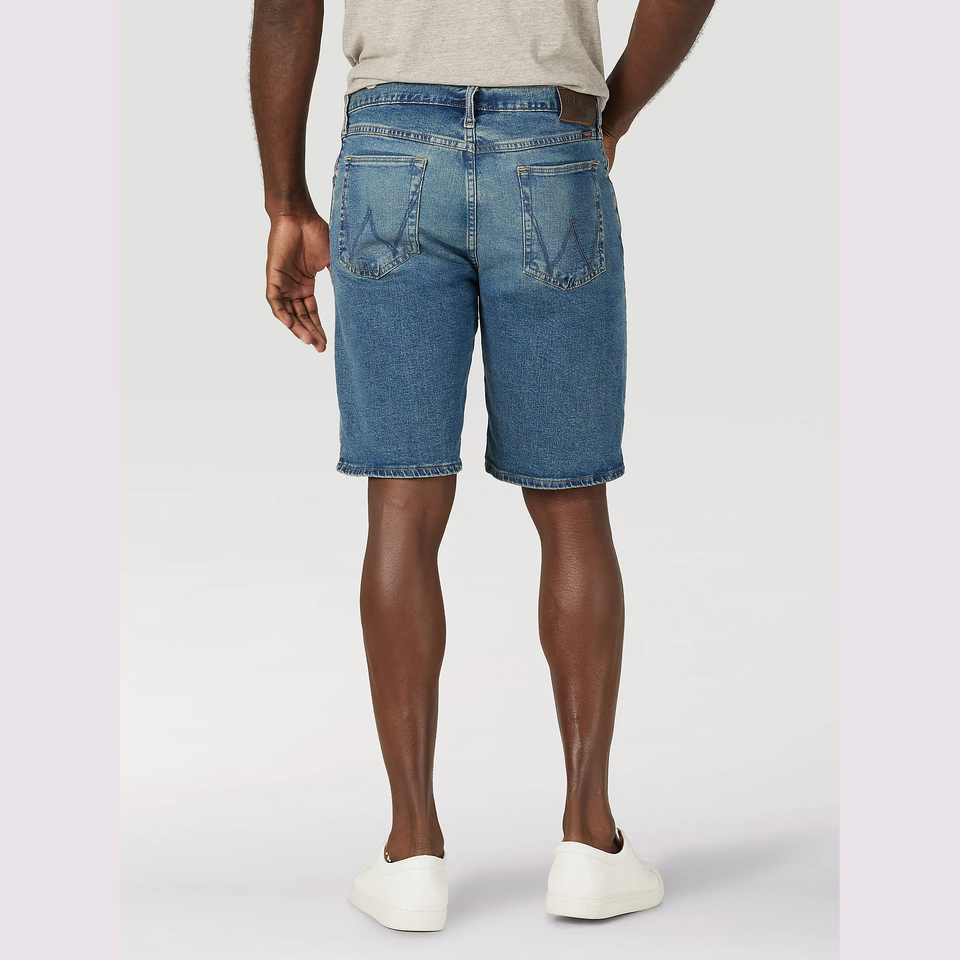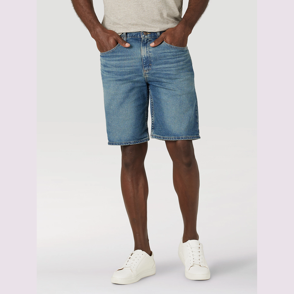 กางเกงขาสั้นผ้ายีนส์ของผู้ชายกางเกงขาสั้นใส่สบายทรงตรงมีกระเป๋ากางเกงยีนส์ผ้าซักสีสำหรับสวมใส่สบายในฤดูร้อน