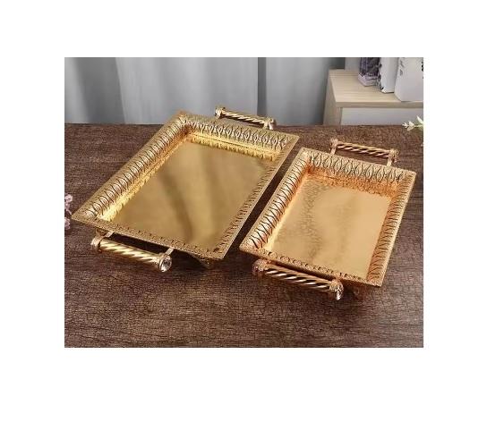 ชุดเซ็ท2ชิ้นถาดโลหะช็อคโกแลตทรงสี่เหลี่ยมผืนผ้าสำหรับตกแต่งขนมหวานพร้อมหูจับสีทองสุดหรู