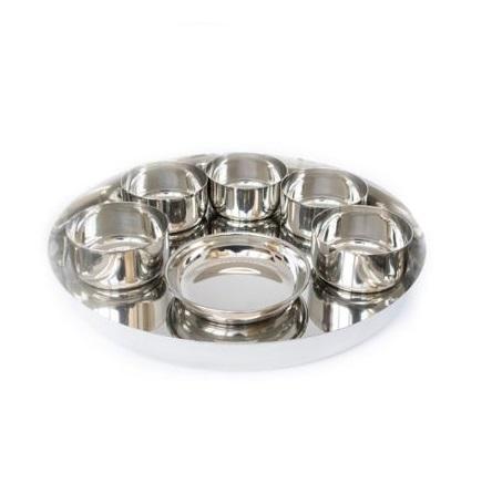 ชุดรับประทานอาหารค่ำธาลีชุดรับประทานอาหารค่ำทำจากทองแดงรูปทรงกลมจากผู้ผลิตในอินเดีย
