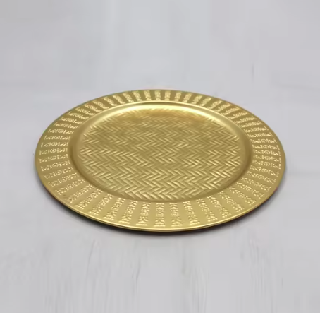จานโลหะชาร์จอุปกรณ์รับประทานอาหารสำหรับงานเลี้ยงร้านอาหารโรงแรมงานปาร์ตี้และของขวัญ