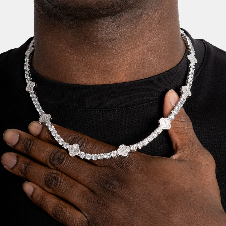 สร้อยคอเงินแท้ 925 ชุบทอง ประดับเพชรโมอิสซาไนต์ VVS ระดับ GRA รูปใบโคลเวอร์ สำหรับผู้ชาย ราคาดีที่สุด
