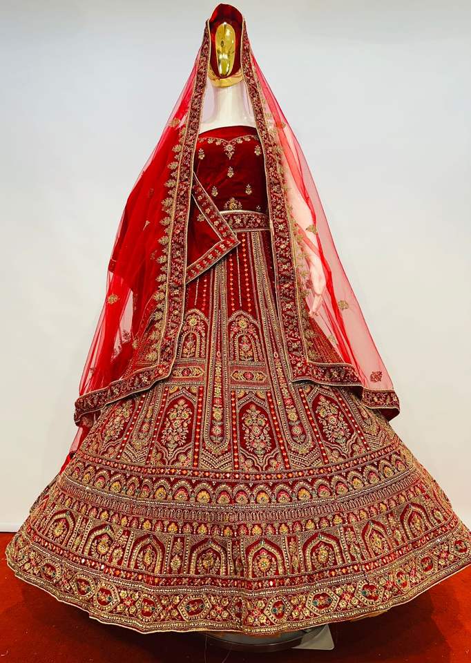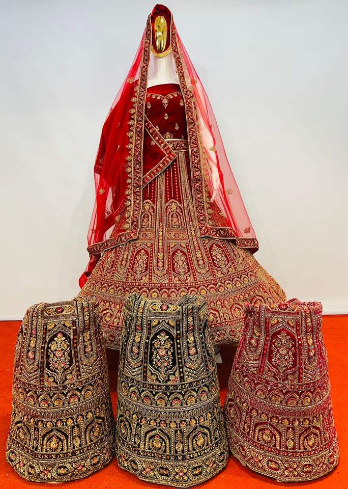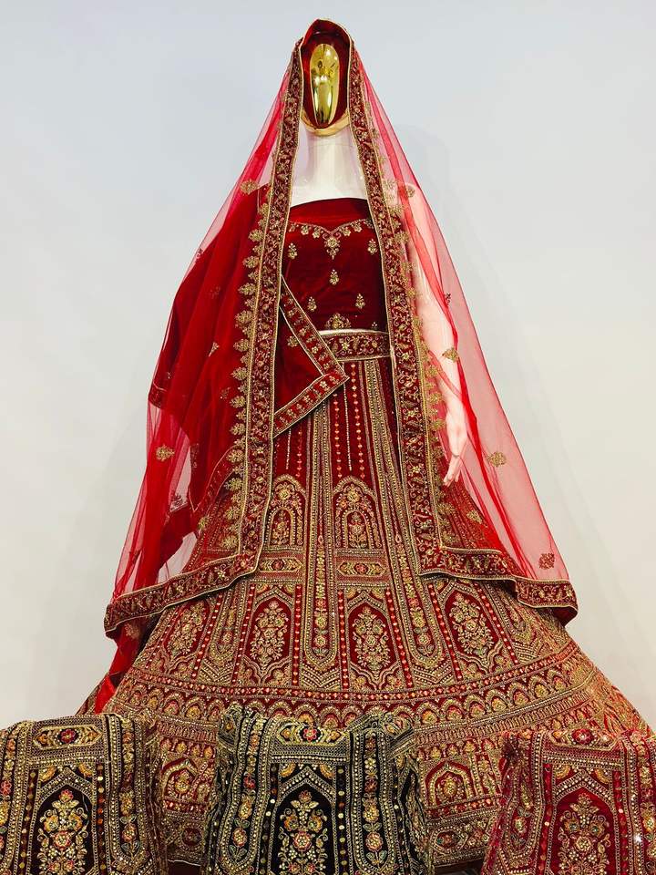 Lehenga กำมะหยี่ขนาดใหญ่พร้อมกระจกมองข้างเต็มรูปแบบ & jarkan ดูมัตตาขนาดใหญ่สำหรับงานปาร์ตี้-เจ้าสาว