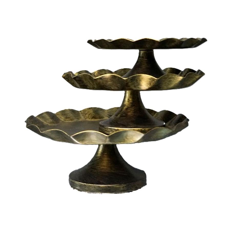 ที่วางเค้กโลหะชุบสังกะสีทรงกลมอุปกรณ์บนโต๊ะอาหารขนมหวานสีเทาสไตล์ยั่งยืน