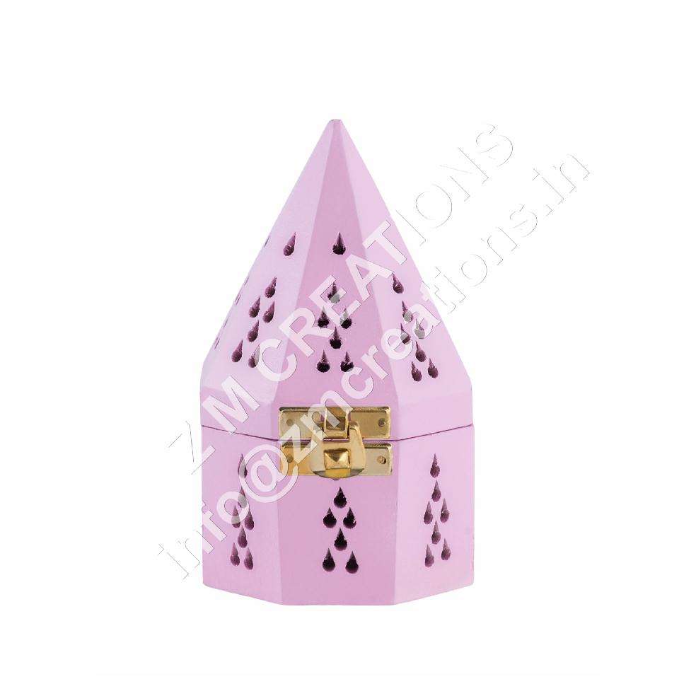 ที่จุดธูปสีชมพูแบบทรงกรวยทำจากไม้อุปกรณ์ตกแต่งบ้านทำจากไม้จันทน์ลาเวนเดอร์
