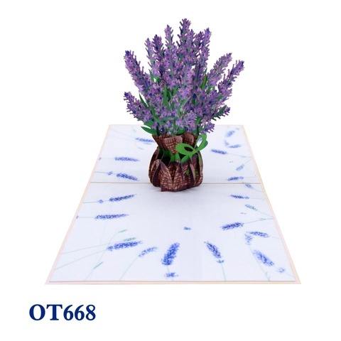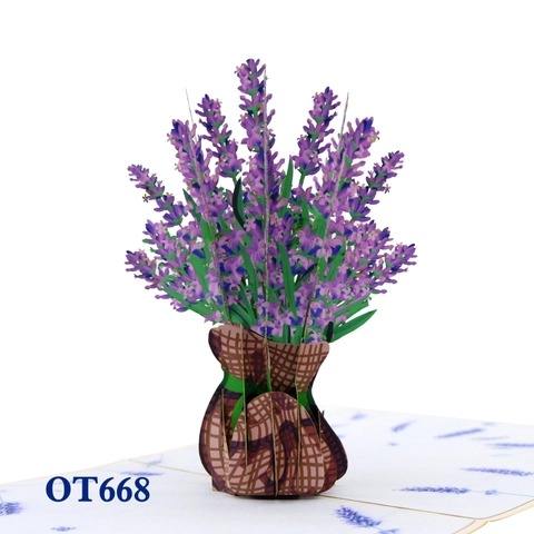 การ์ดป๊อปอัพตะกร้าลาเวนเดอร์3D งานฝีมือกระดาษตัดด้วยเลเซอร์งานแฮนด์เมดสไตล์คู่รักพิมพ์ออฟเซตสำหรับของขวัญวันขอบคุณพระเจ้า