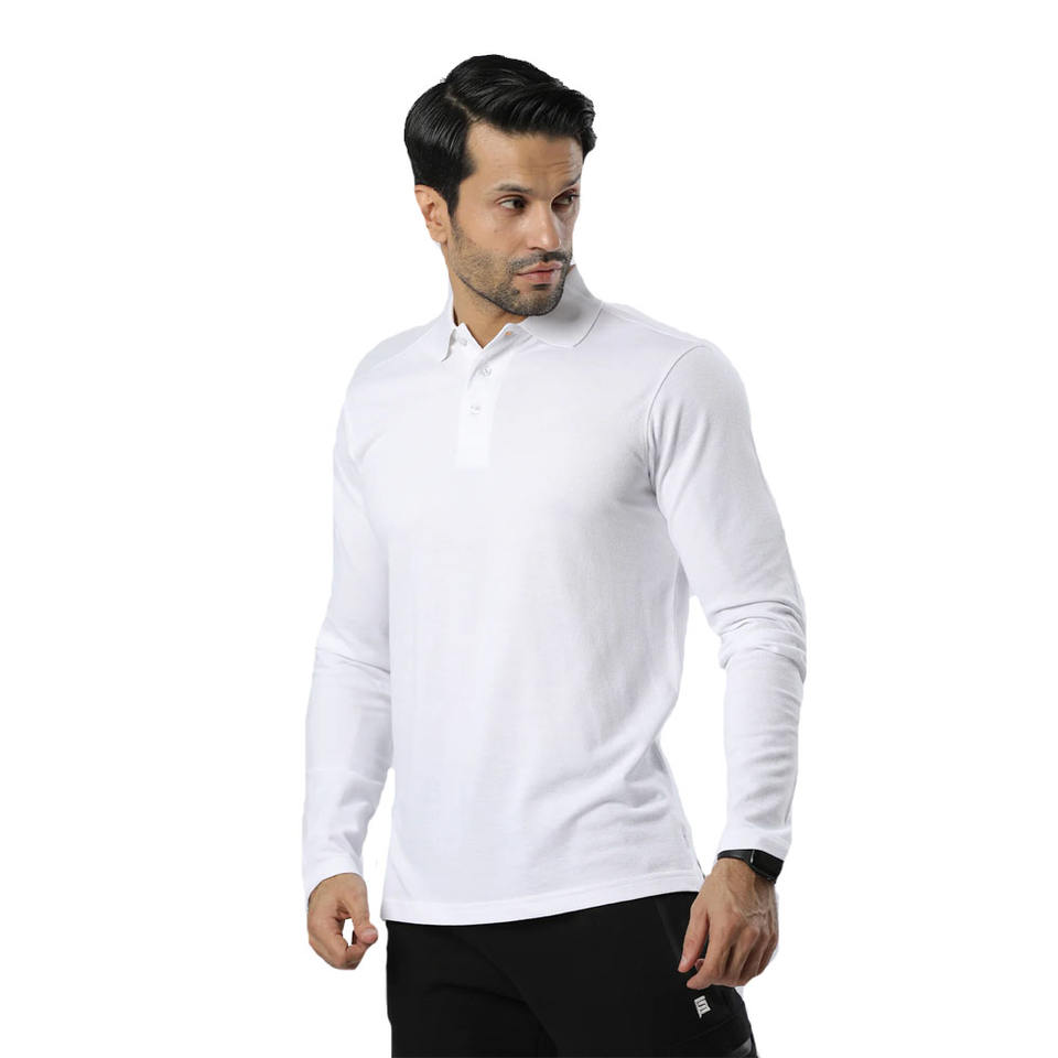 เสื้อโปโลผู้ชายยอดนิยม 100% ผ้าฝ้ายสีขาวเปล่าแขนยาวขายจํานวนมากพร้อมโลโก้และการออกแบบที่กําหนดเอง
