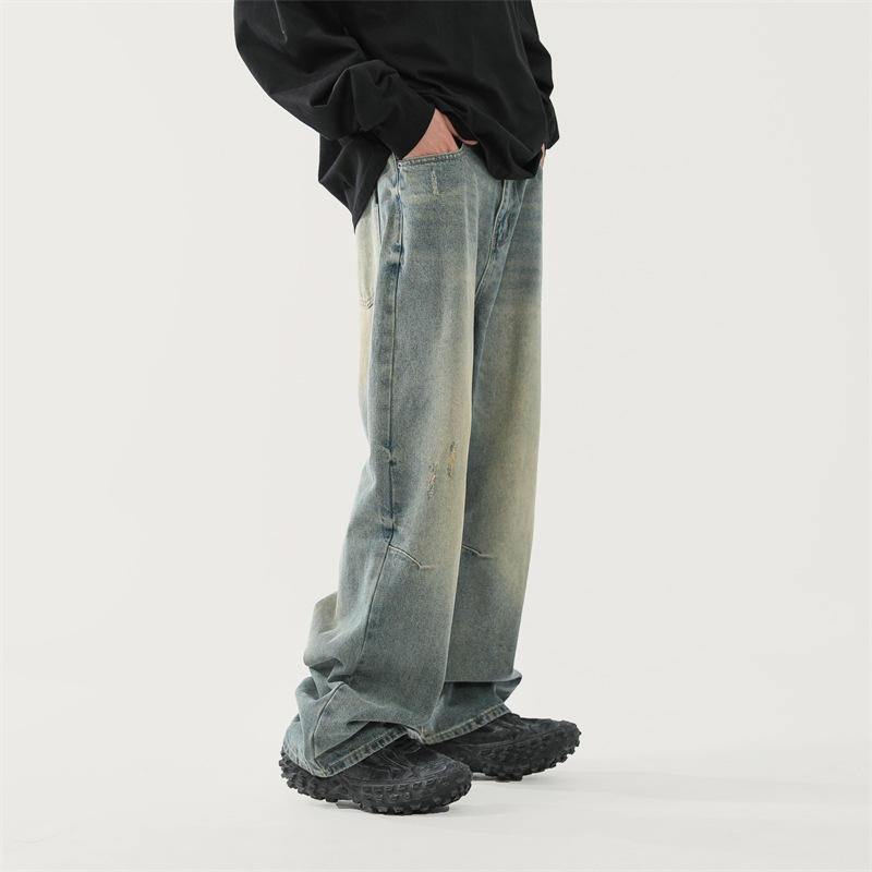 กางเกงยีนส์ทรงหลวมเอวกลางผ้าแคนวาสน้ำหนักเบาสำหรับผู้ชาย สไตล์สตรีทแฟชั่น ล้างสีแบบสโตนวอช ขายส่ง รับทำโลโก้ กางเกงลำลอง