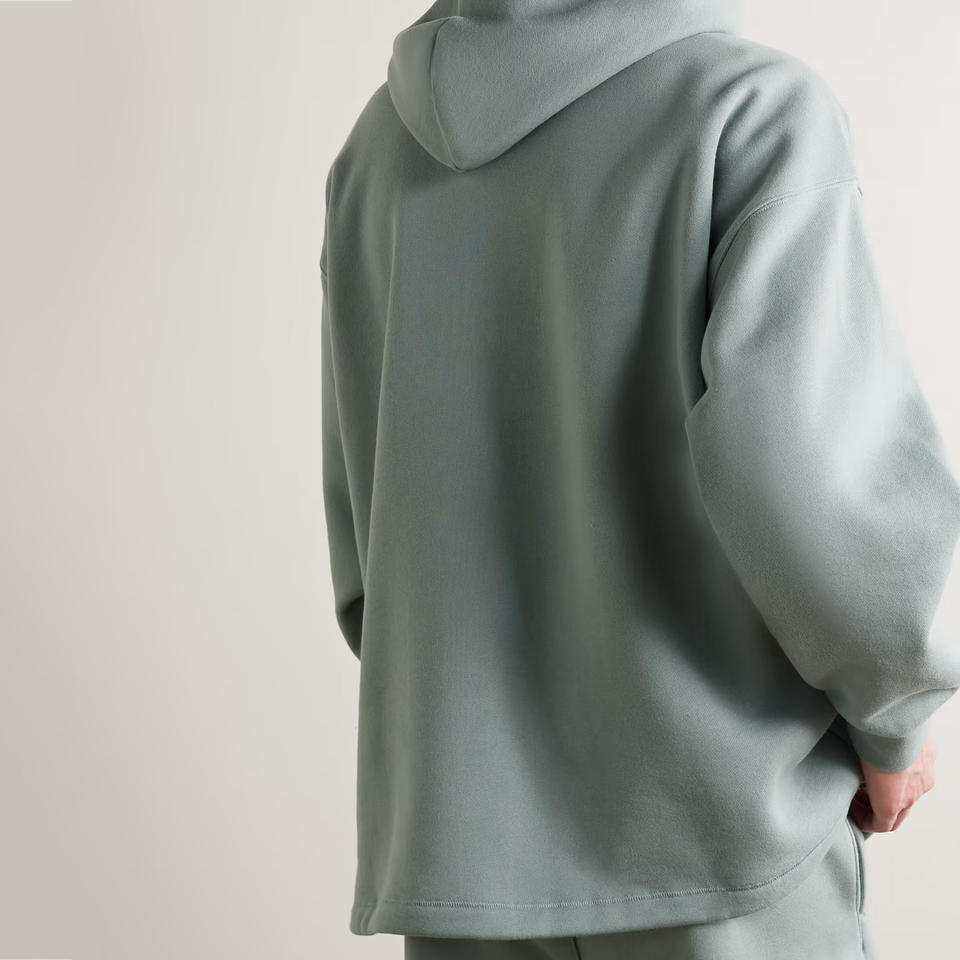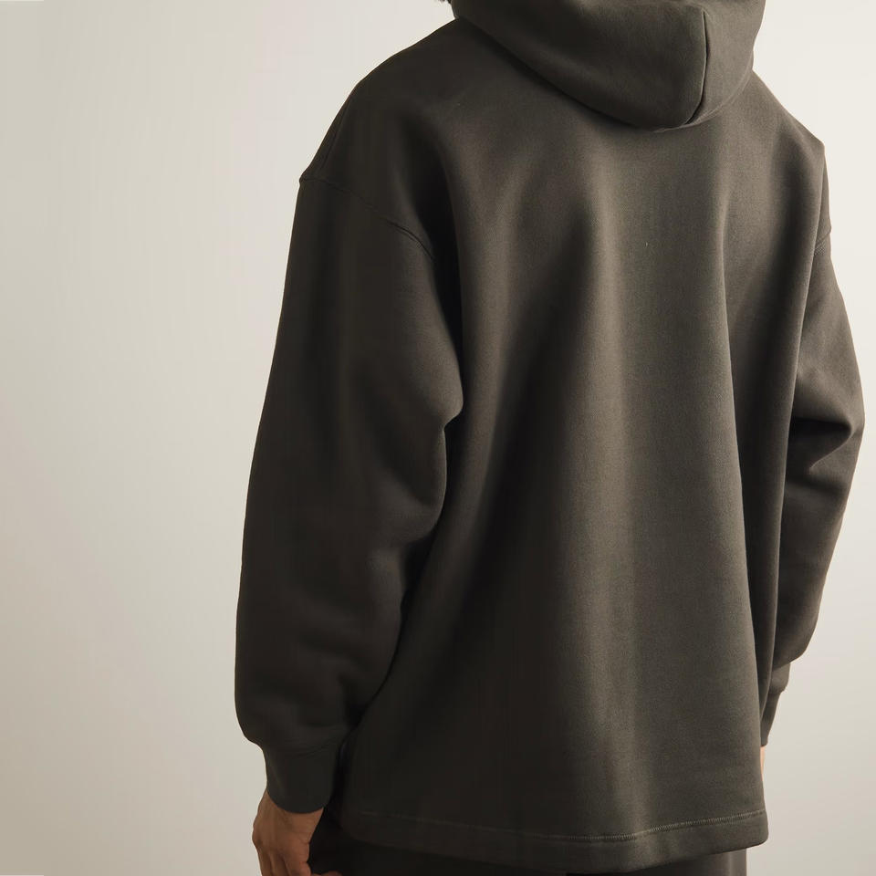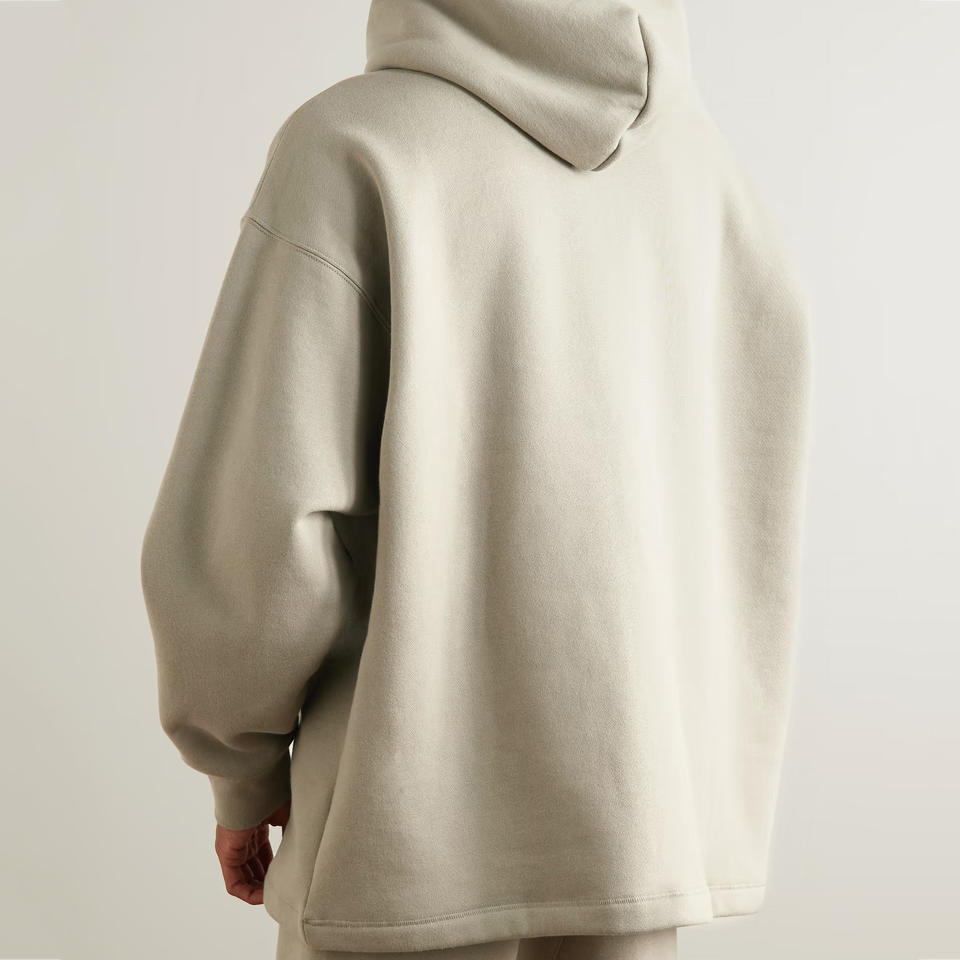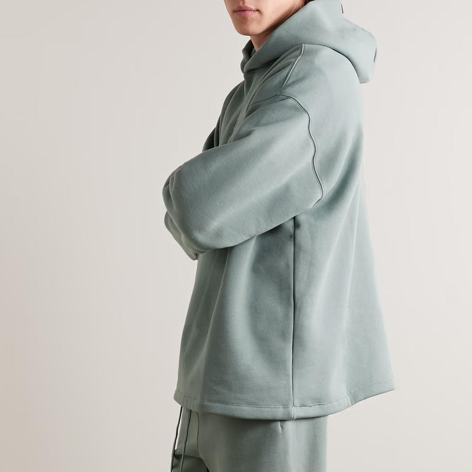 เสื้อมีฮู้ดคล้องไหล่ของผู้ชายผ้าฝ้ายผสมแนวสตรีทเสื้อแบบยั่งยืนป้องกันการหดตัว