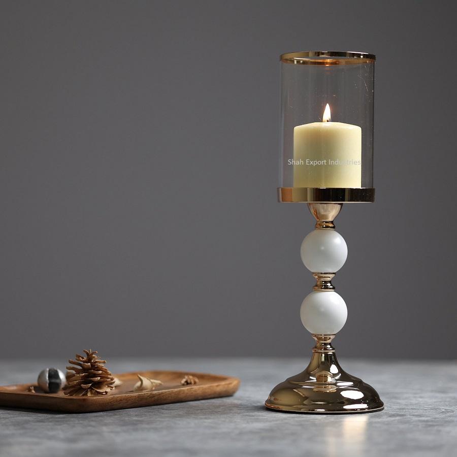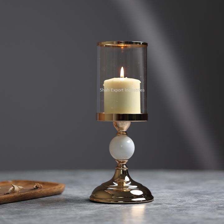 ที่ใส่เทียนพายุเฮอริเคนสีทองทำจากโลหะและแก้วยอดนิยมสำหรับงานแต่งงานงานปาร์ตี้ตกแต่งโต๊ะพายุเฮอริเคน