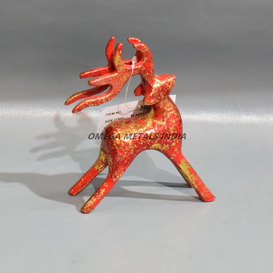 ตุ๊กตากวางเรนเดียร์คริสต์มาสสีแดงสีทองเมทัลลิกที่มีการออกแบบทางศิลปะที่เป็นเอกลักษณ์สำหรับการตกแต่งวันหยุดและปาร์ตี้ที่หรูหรา
