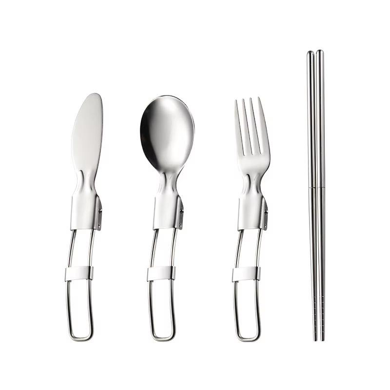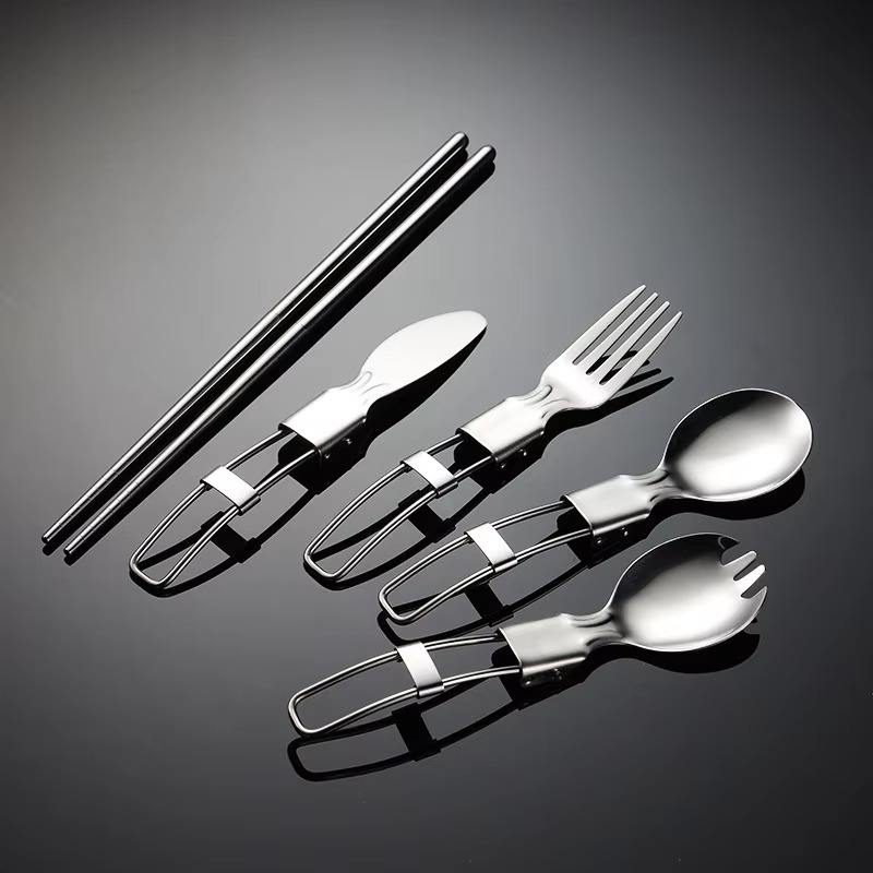 ชุดช้อนส้อมพับได้พร้อมกระเป๋าชุดช้อนส้อมสแตนเลสเกรดอาหารสำหรับปิกนิกตั้งแคมป์