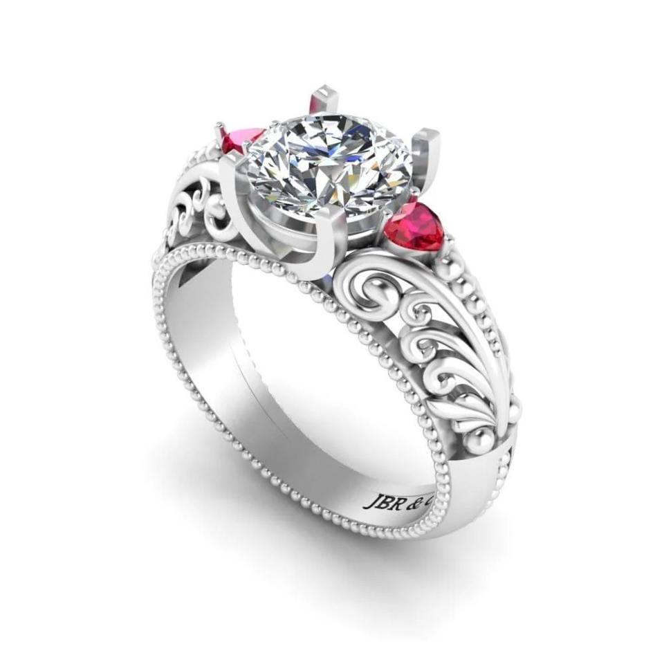 แหวนหมั้นเพชรเม็ดทองทรงกลม925เงินสไตล์วินเทจ