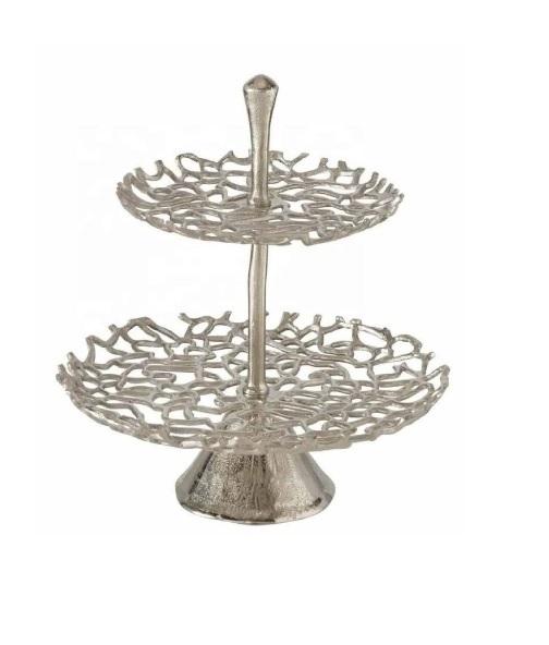ที่วางเค้กโลหะสแตนเลสแบบชั้นเดียวที่วางเค้กทำจากโลหะสำหรับงานเลี้ยงวันเกิดสีเงิน