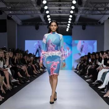 เดรสสั้นรัดรูปพิมพ์ลายประติมากรรมสีฟ้าและชมพูสุดฮิตสำหรับผู้หญิง เหมาะสำหรับงานปาร์ตี้