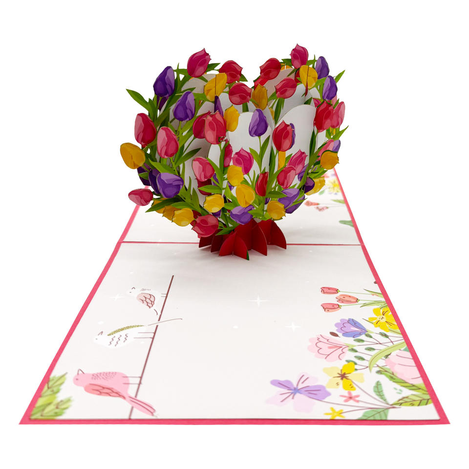 การ์ดป๊อปอัพของขวัญ & งานฝีมือ3D รูปหัวใจทิวลิปงานฝีมือกระดาษงานฝีมือจากเวียดนามอะนิเมะสไตล์ออกแบบตามต้องการ