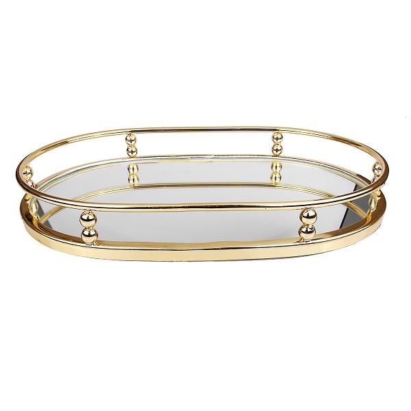 ถาดแก้วทรงรีสำหรับตกแต่งอาหารเซิร์ฟเวอร์อาหารเช้าชุบทองดีไซน์ไม่เหมือนใครทันสมัย
