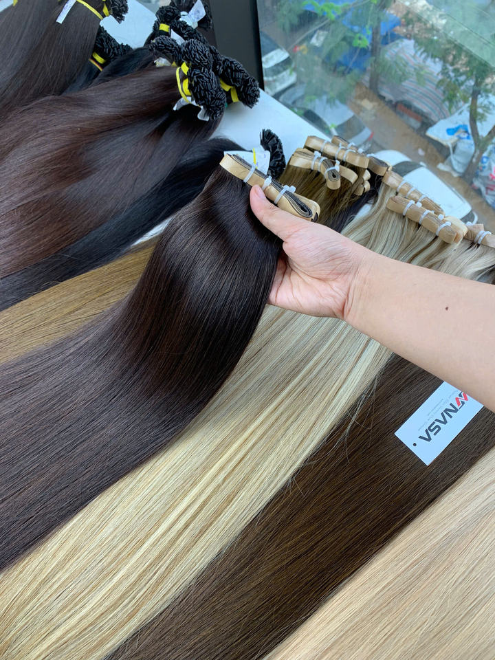 ผมเวียดนามฮานอยแท้แบบเป็นมัด ยอดนิยม คุณภาพสูง หนาพิเศษ 100 กรัม ไม่พันกัน ตรงธรรมชาติ แข็งแรง เงางาม ฟอกสีแล้ว
