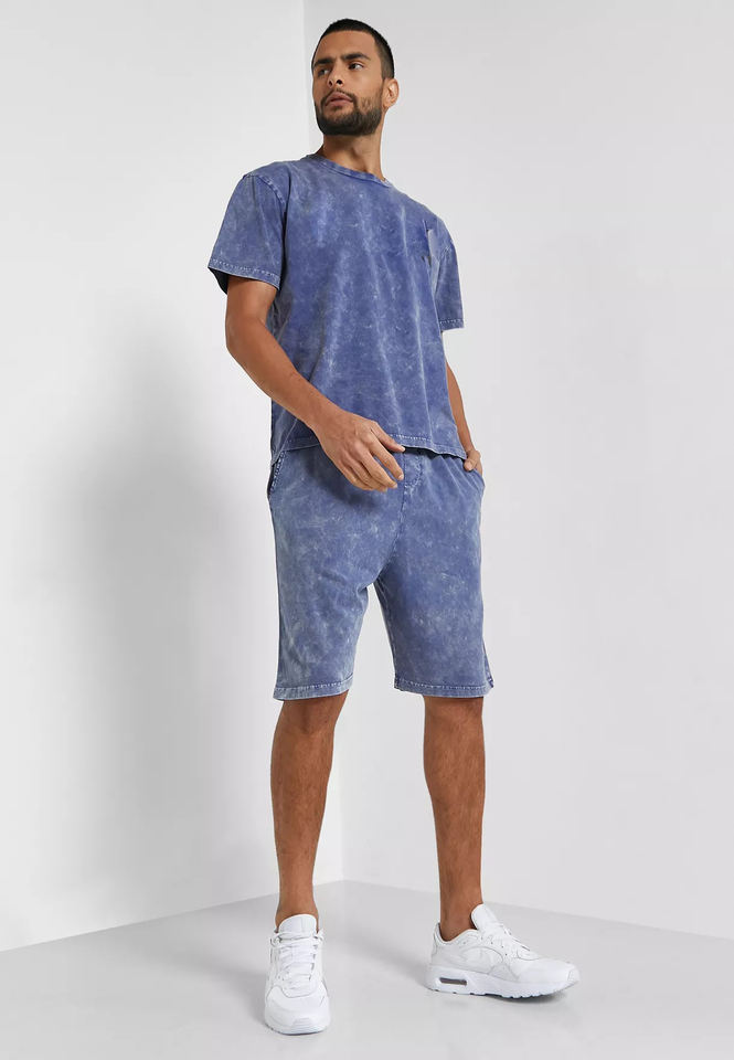 ชุดเสื้อยืดและกางเกงขาสั้นสำหรับผู้ชายชุดสตรีทแวร์เสื้อซักด้วยกรดชุดฤดูร้อนตามสั่ง