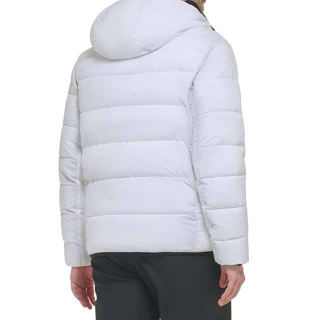 เสื้อแจ็คเก็ตพัฟเฟอร์ผู้ชายแบบขายส่งยอดนิยม พร้อมโลโก้สั่งทำ แขนยาว สวมใส่สบายสำหรับฤดูหนาว มีฮู้ดและปกตั้ง ป้องกันน้ำได้
