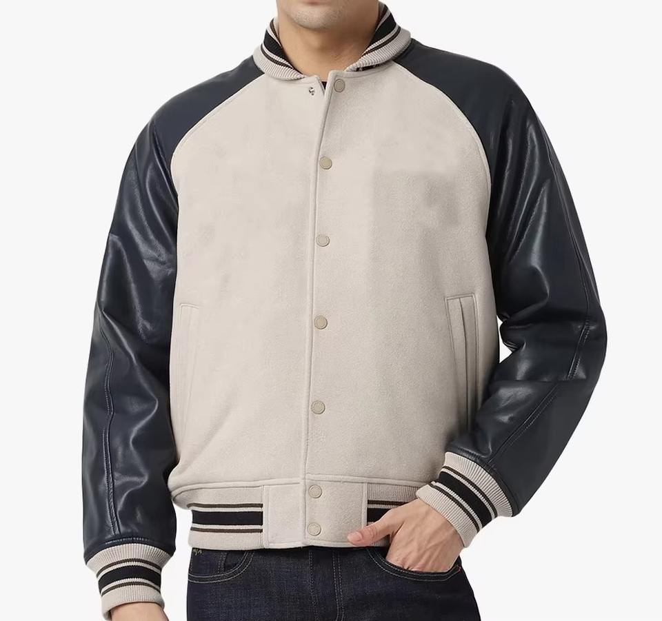 แจ็คเก็ตวาร์ซิตี้แฟชั่นสุดฮิตสำหรับผู้ชาย แจ็คเก็ตเบสบอลบอมเบอร์หนัง แจ็คเก็ตวาร์ซิตี้ผ้าฟลีซสำหรับฤดูหนาว สไตล์เท่ๆ รับผลิตตามสั่งขายส่ง