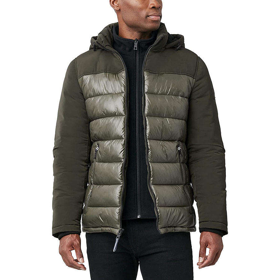 แจ็คเก็ตพัฟเฟอร์แบบมีฮู้ดติดกระดุมและซิปทรงยาวบางสำหรับผู้ชาย ดีไซน์ทันสมัย สไตล์ลำลอง กันลม ผลิตจากไนลอน กำลังเป็นที่นิยมอย่างมาก
