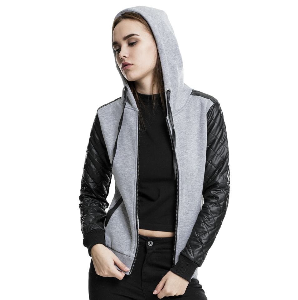 เสื้อฮู้ดแขนหนังผู้หญิงยอดนิยมสำหรับฤดูหนาว มีซิป สไตล์ลำลอง สตรีทแวร์ ทรงปกติ กันน้ำ ระบายอากาศได้ดี