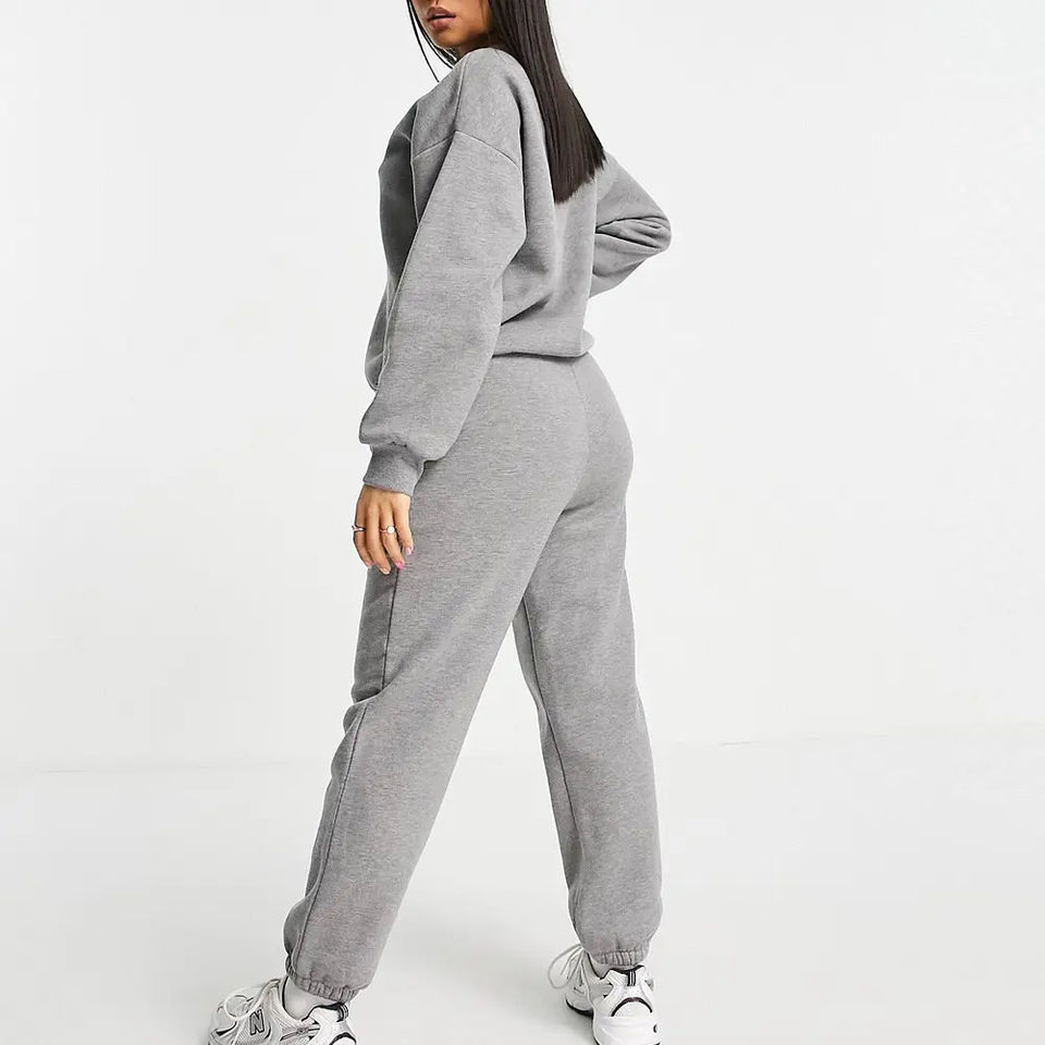 ชุดวอร์มลำลองผู้หญิงยอดนิยม ลายเรียบ ผ้าฝ้ายฟลีซ 100% ระบายอากาศดี เหมาะสำหรับฤดูหนาว เอวยางยืด ดีไซน์ทันสมัย ขายส่ง