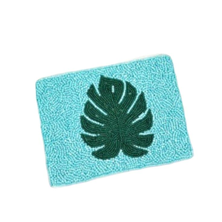 กระเป๋ามีซิปขนาดเล็กปักลายใบปาล์มลูกปัดสีเขียวและสีเทอร์ควอยซ์แฟชั่นทำด้วยมือและน่ารักสัมผัสได้จากอินเดีย