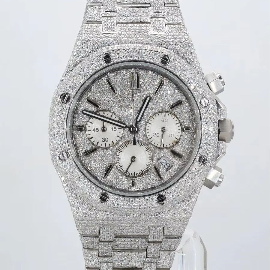 Top VVS Quality Round Moissanite Diamond Mechanical Limited Edition Luxury Fashion Hip Hop Stainless Steel Watch Crystal Dial