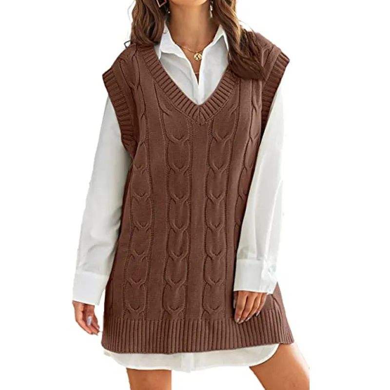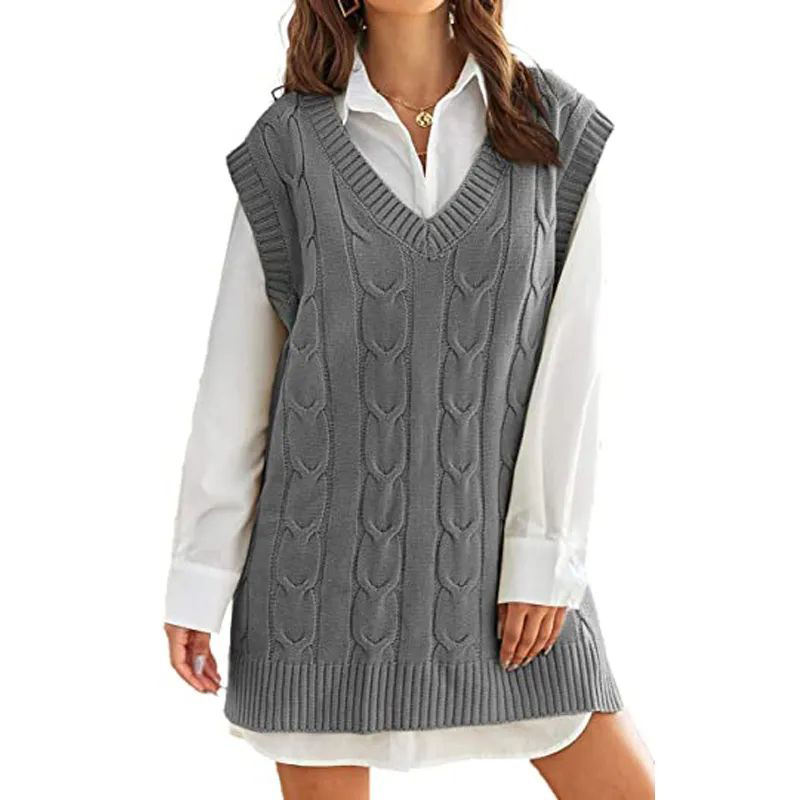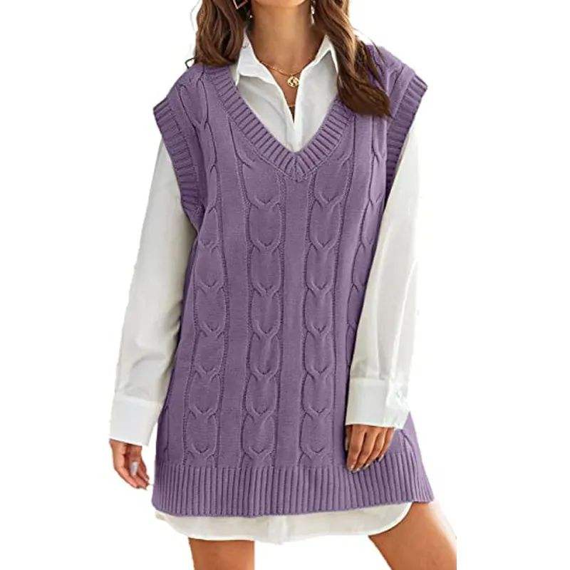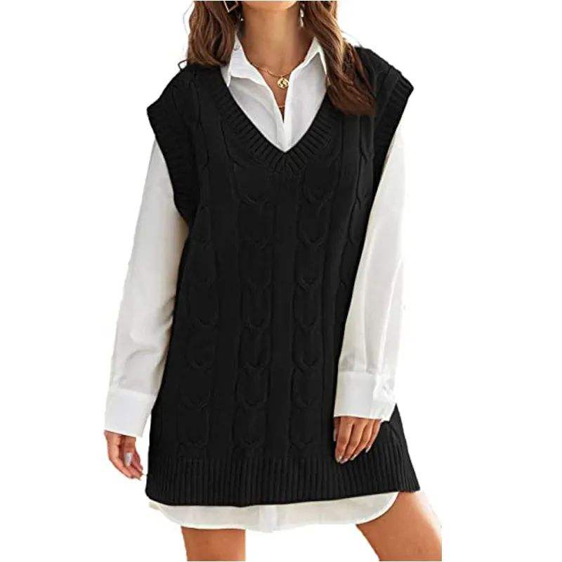 เสื้อสเวตเตอร์ไหมพรมอะคริลิคสีพื้นแบบลำลองสำหรับผู้หญิง คอวี แขนกุด ลายแบบสั่งทำ แฟชั่นล่าสุด