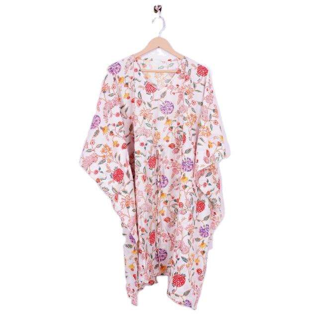 ชุดคาฟตันผ้าฝ้ายขายส่งคุณภาพดี, คาฟตันลายดอกไม้สไตล์อินเดีย, ชุดเดรสคาฟตันผ้าฝ้ายลายดอกไม้, เสื้อคลุมโบโฮไซส์ใหญ่ราคาขายส่ง