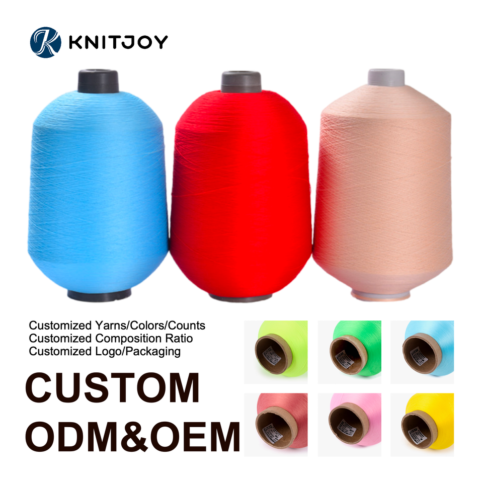 เส้นด้ายโพลีเอสเตอร์ผ้ายืดสำหรับถักแบบย้อมเส้นด้ายโพลีเอสเตอร์แบบ100D 75D