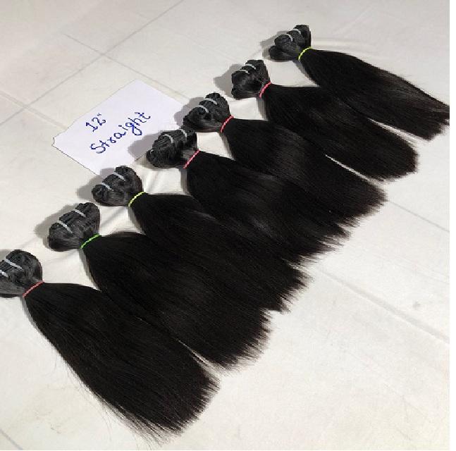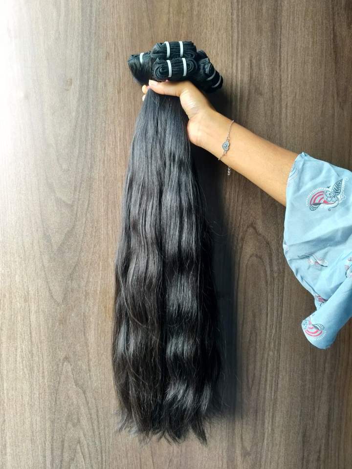 ผมต่อแบบตรง 20 นิ้ว เกรดพรีเมียม แบบ Remy ผมแท้จากอินเดีย แบบ Single Drawn สีดำ เย็บด้วยเครื่องจักรแบบ Double Weft ปรับแต่งได้