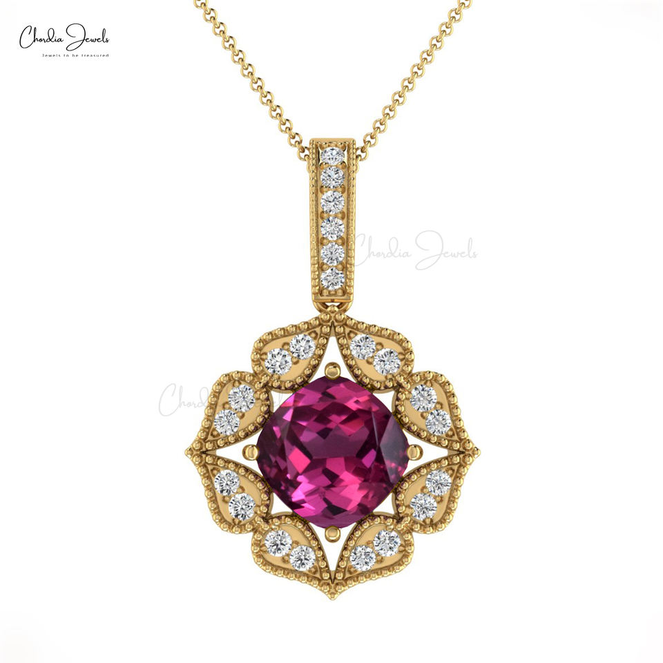 ผู้จัดจำหน่ายขายส่งชั้นนำ จี้ห้อยคอประดับโรโดไลต์การ์เนตและเพชรแท้ 1 กะรัต ดีไซน์อาร์ตเดโค ทำจากทองคำแท้ 14k