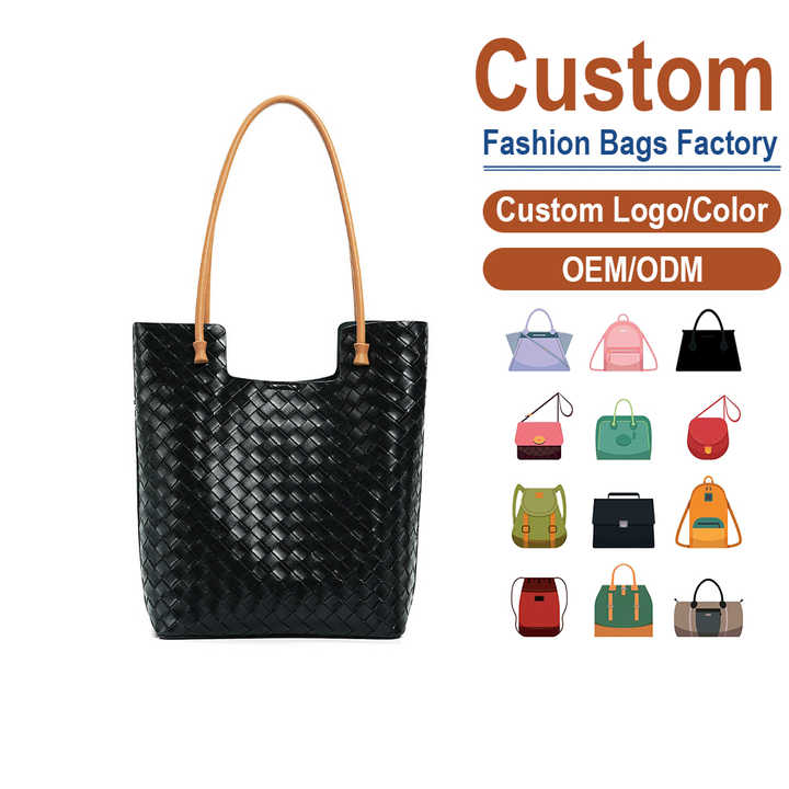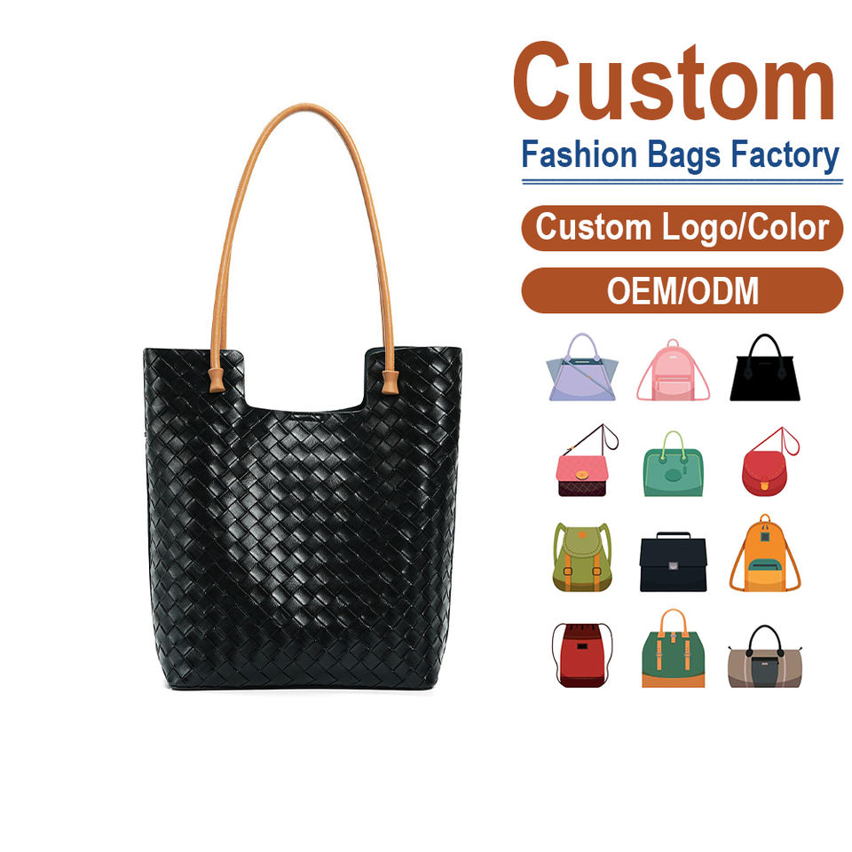 กระเป๋าโท้ทหนังวัวชั้นบนสุดแบบทอ สีดำ ดีไซน์พรีเมียม ขนาดใหญ่ จุของได้เยอะ เหมาะสำหรับฤดูร้อน สะพายไหล่หรือถือใต้วงแขน รับผลิตแบบ OEM ตามสั่ง