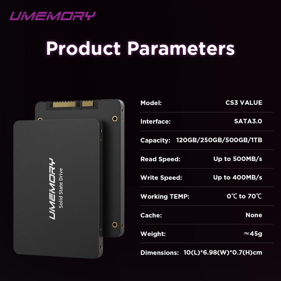 CS3 umemory 200GB SATA 3.0 2.5 "Compact SSD ไดรฟ์ภายนอกแบบพกพาใหม่สำหรับแล็ปท็อปสำรองข้อมูล