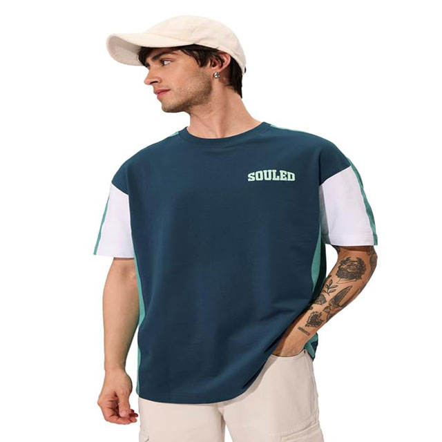 เสื้อคอตตอน100% คุณภาพสูงสำหรับใส่ตามท้องถนนเสื้อยืดแขนสั้นของผู้ชายเปิดไหล่ขนาดใหญ่พิมพ์ลายย้อนยุค